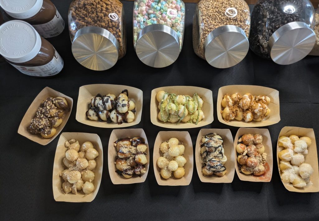 Langos mit verschiedenen Toppings und süße Kräppelchen