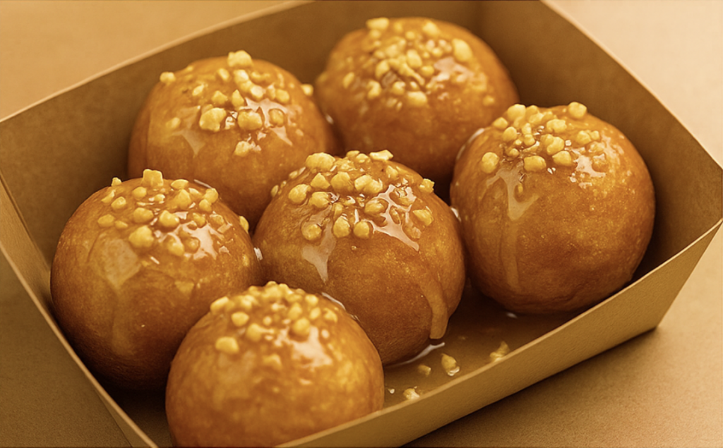griechische frittierte Teigbällchen mit verschiedenen süßen Toppings